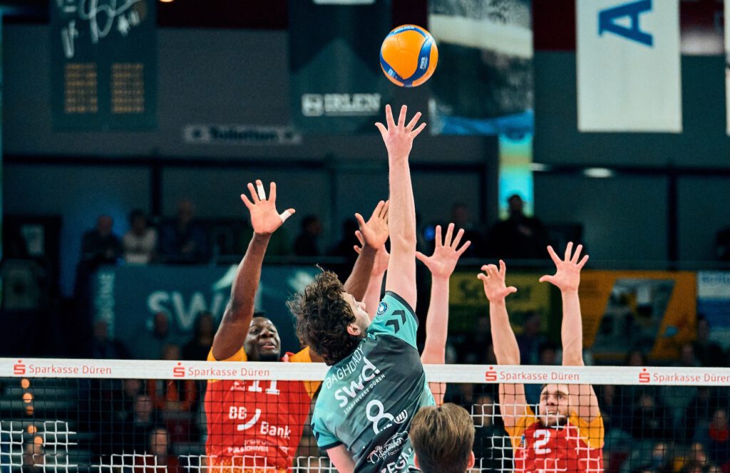 Düren (JM). Die BADEN VOLLEYS SSC Karlsruhe mussten sich beim Tabellendritten SWD powervolleys Düren mit 0:3 geschlagen geben (17:25, 17:25, 23:25). Während die Gastgeber über weite Strecken ihre Klasse zeigten und vor allem im Aufschlag und Block dominierten, hielten die Karlsruher insbesondere im dritten Satz stark dagegen und waren nah dran, sich zumindest mit einem Satzgewinn zu belohnen.